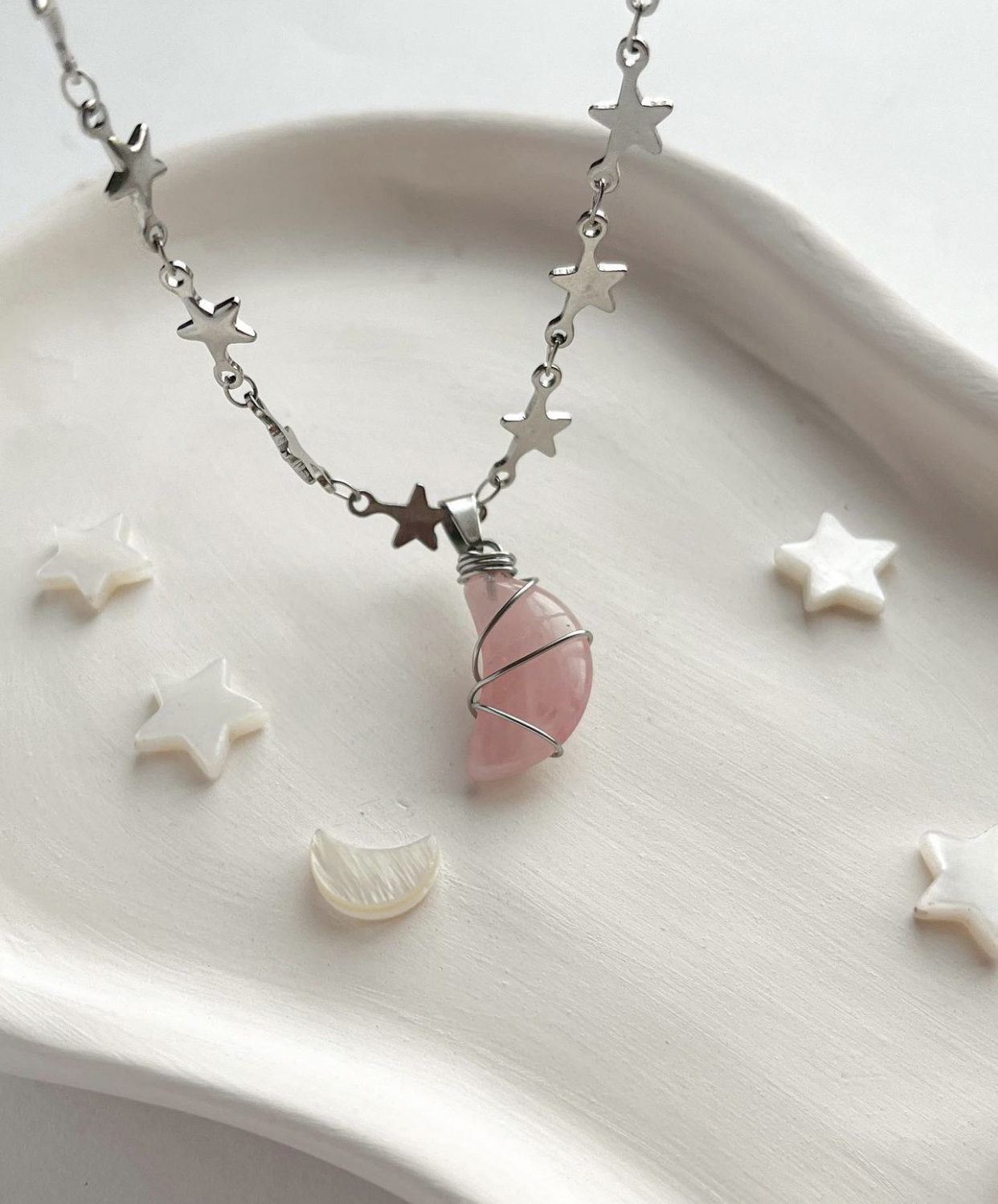 گردنبند ماه و ستاره رز کوارتز