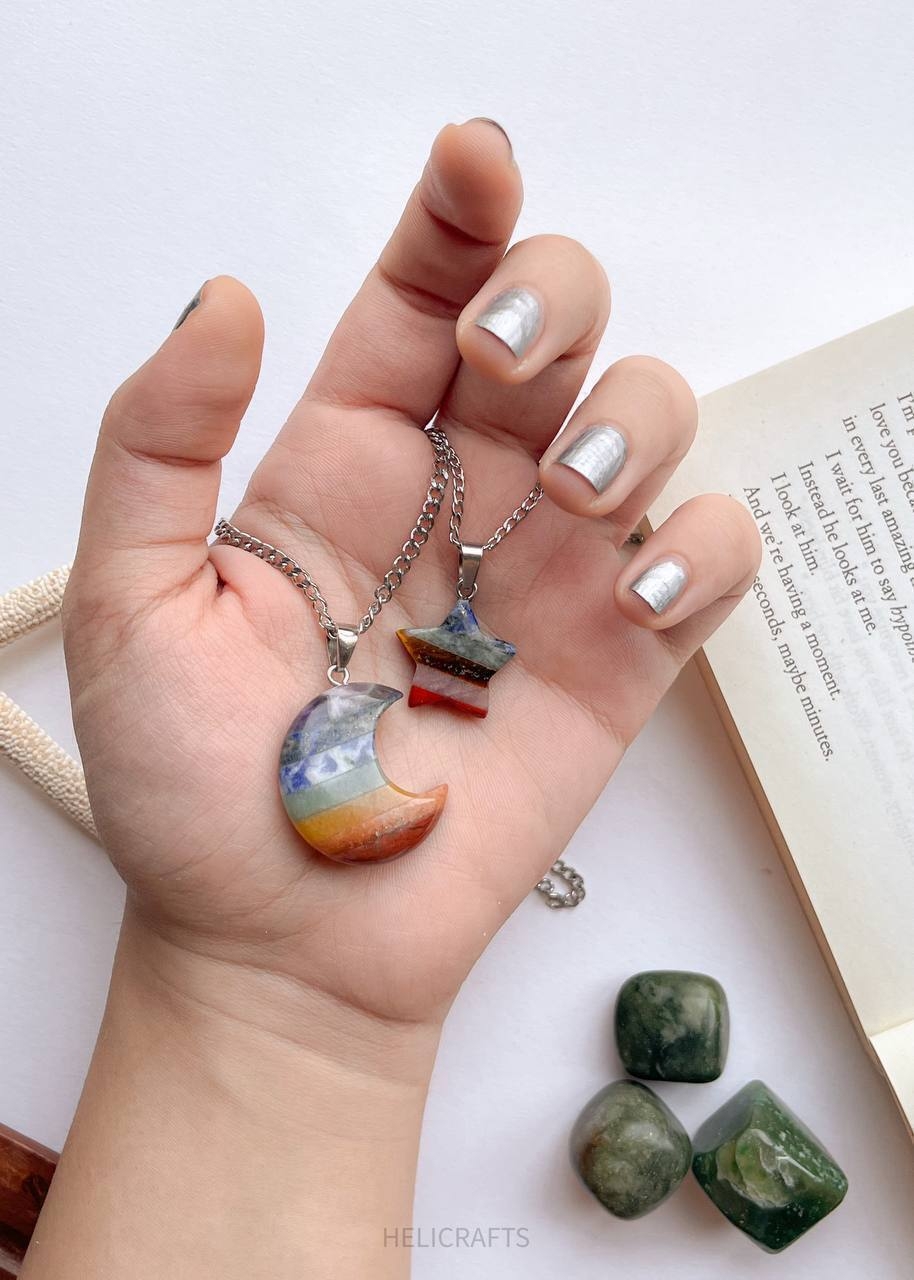 سنگهای بهکار رفته در پلاک: آمیتیست، لاجورد، سودالیت، اونتورین، سیترین، اونتورین پرتقالی، جاسپر قرمز، چشم ببر
